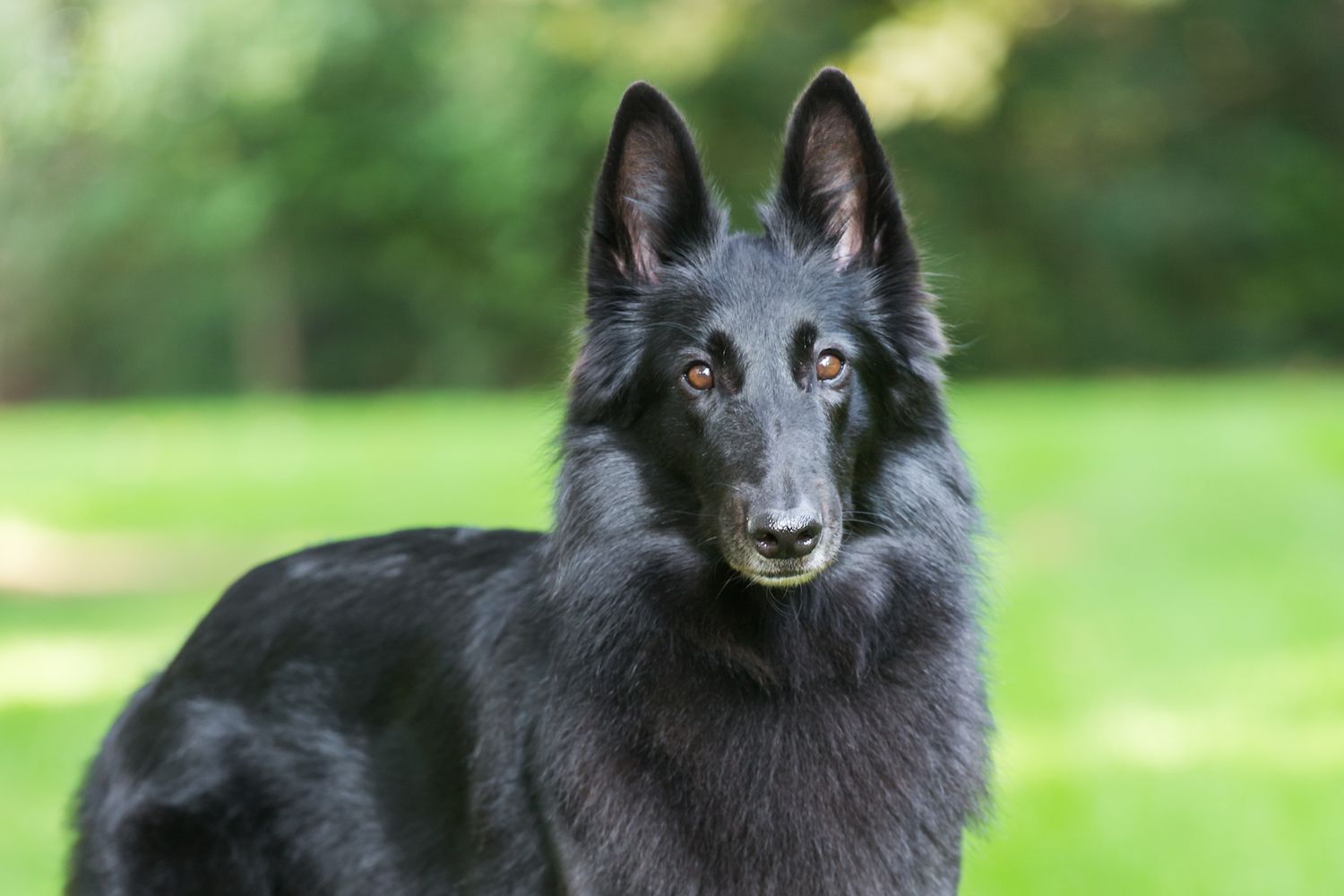 - Groenendael: Long, straight, black coat.